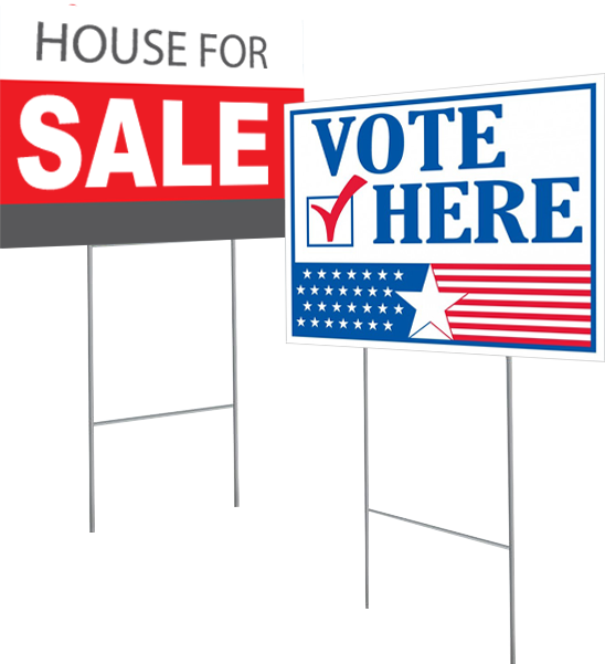 YARD SIGNS – L-POSTS – CB POSTS – H-FRAMES – STAKES – CAR WRAPS – CAR MAGNETS – FLAGS – POSTERS – BANNERS – COLOR COPIES – HIGH QUALITY BUSINESS CARDS – FLYERS